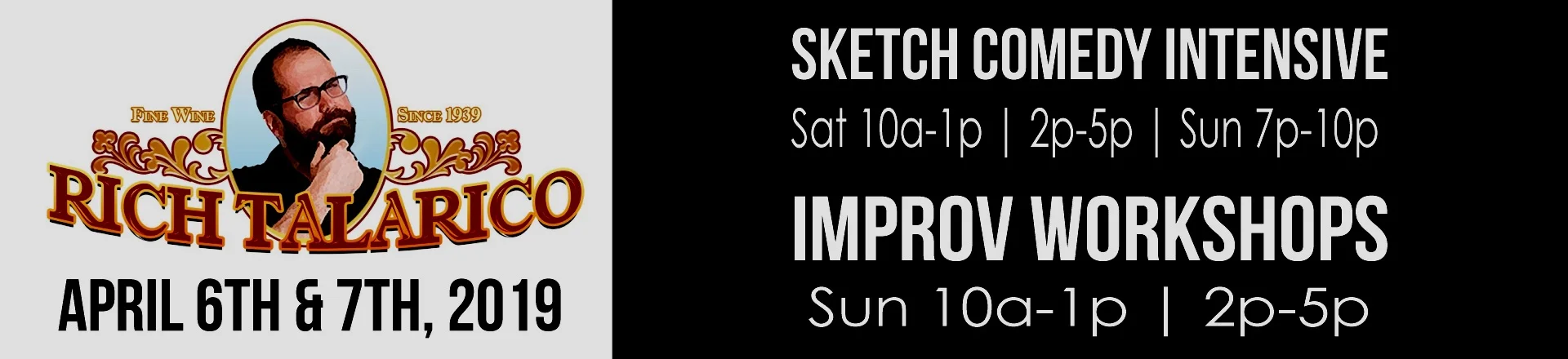 Rich will be joining us for 3 workshops: a two-day Sketch Comedy Intensive & two 3-hour Improv Workshops. You can sign up for the Sketch Intensive as a whole and the Improv Workshops individually. Max capacity for each is 16 students. If one of them sells out, we’ll open spots for auditing (ie watching only).